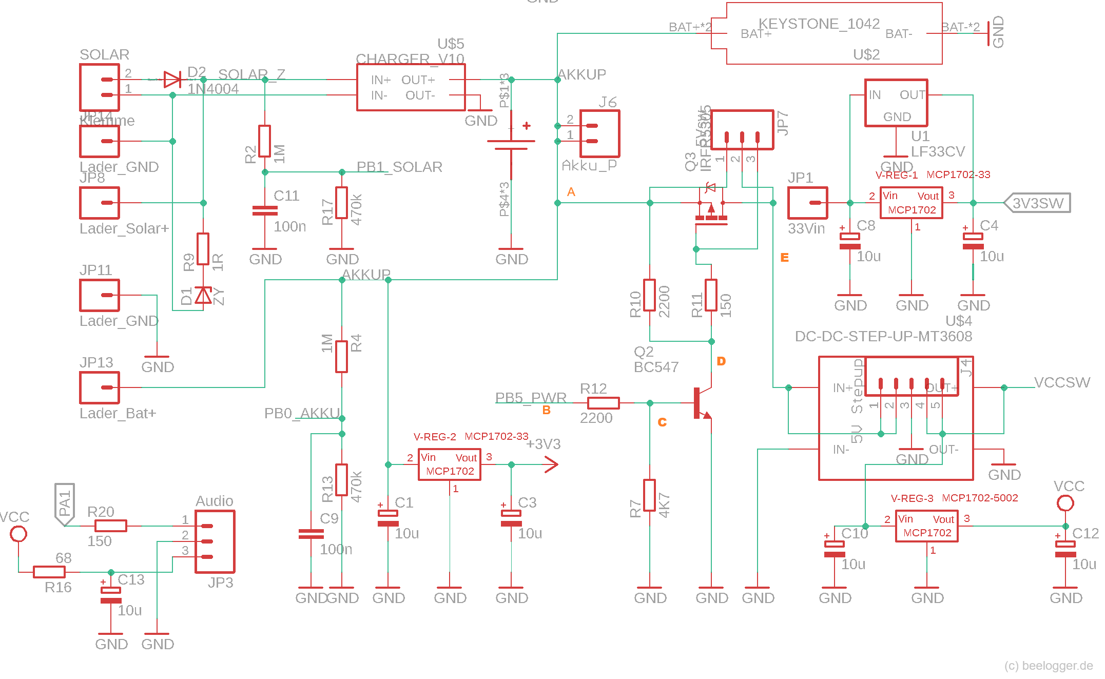 Der STM32F4x1 bezieht seine Versorgung aus dem Akku über einen MCP1702-33.